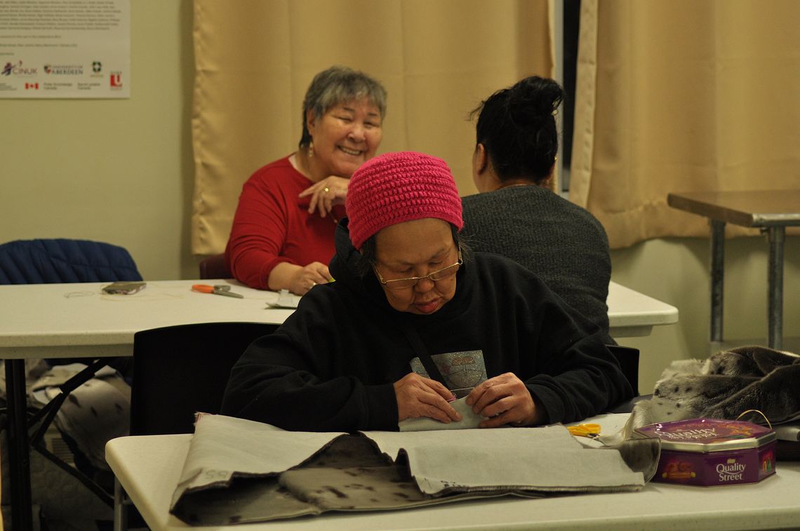 Our coordinator begins every session by cooking a meal for the Inuit women who gather, followed by cultural activities and crafts that include making sealskin parka and mittens, beading, and, during the summer, gathering heather to make tea.